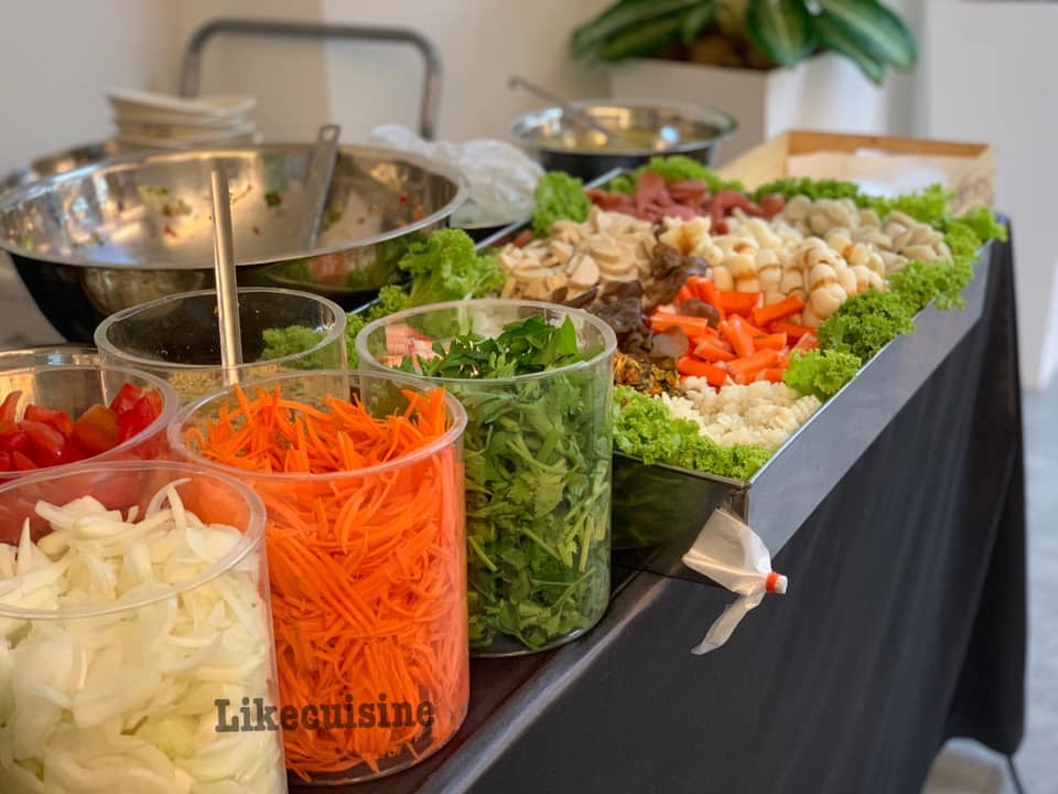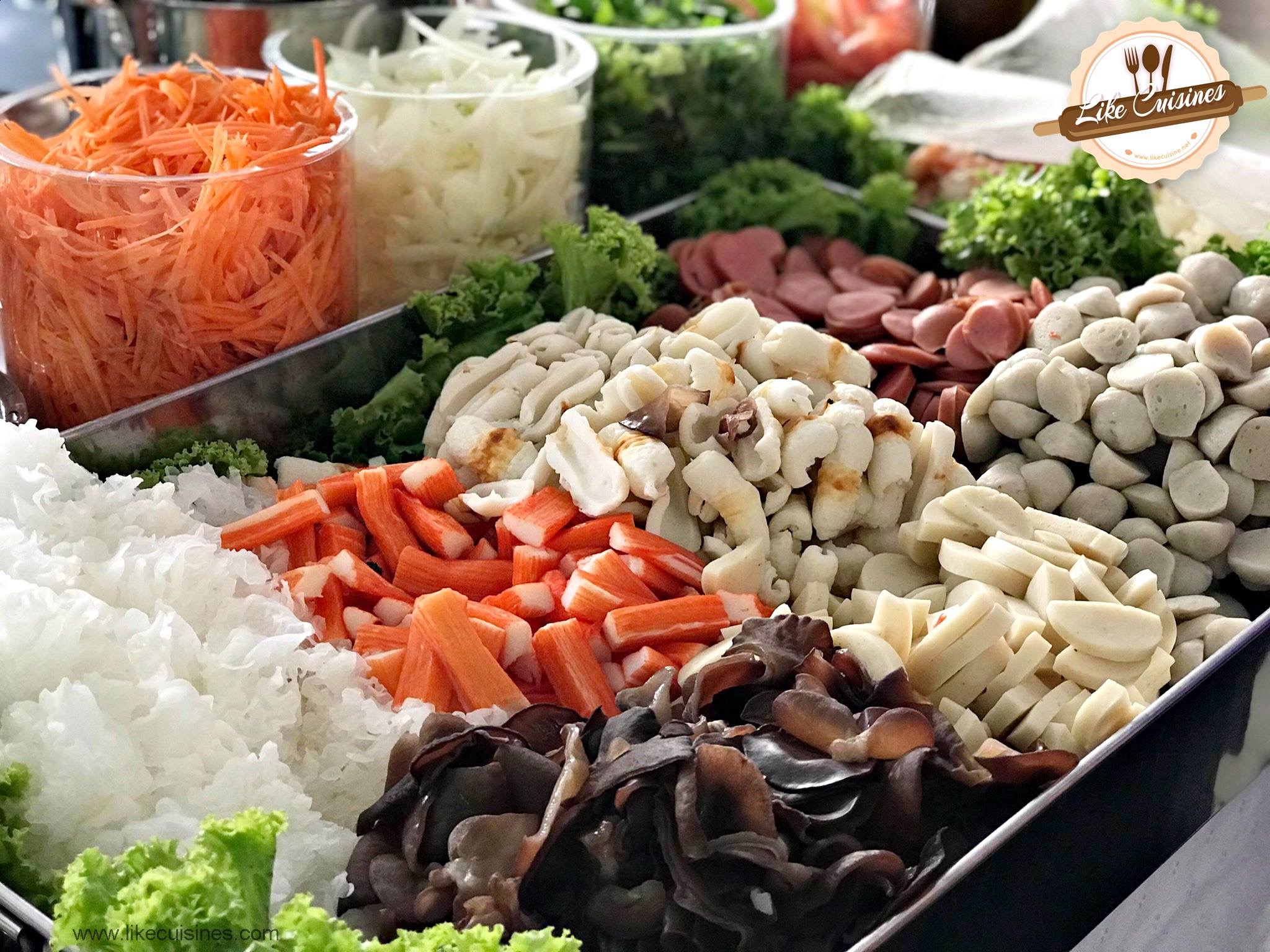 - หมูสับ ลูกชิ้น ขาไก่ วุ้นเส้น แครอท กระหล่ำปลี